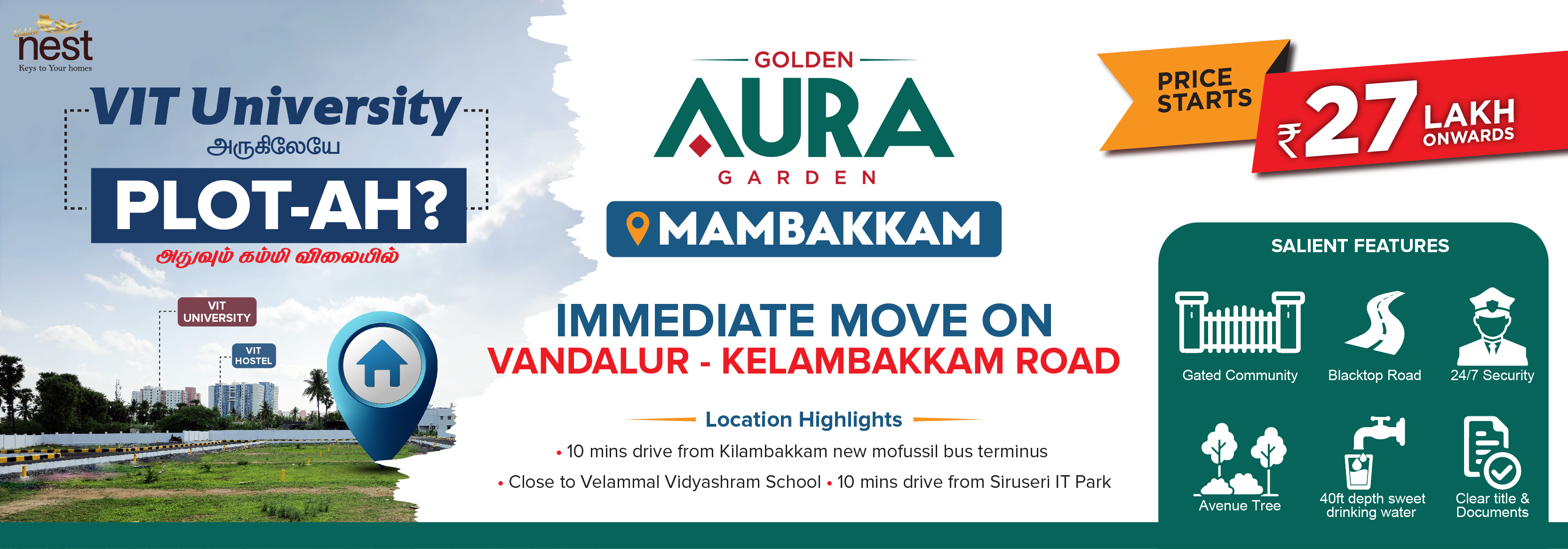 On my site visit to Collector Nagar Chengalpattu , all the services were prompt and excellent. Mr.Nataraj Managing Director was very kind..Each and every query of mine was answered in detail.Best Investment property.My Best Wishes to Golden Nest Realtors....